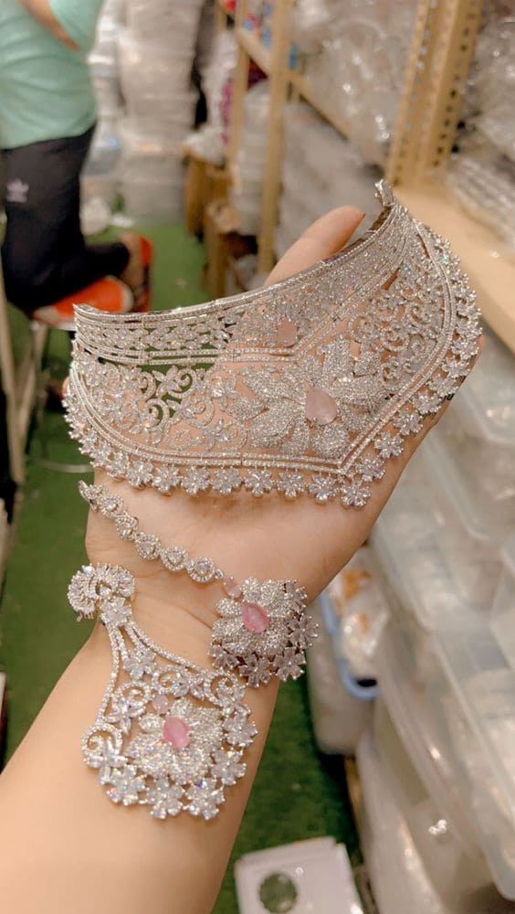 This Pearl Exquisite Fancy Necklace Set with Earrings is a stunning addition to any jewelry collection. The set features a delicate pearl necklace and matching earrings, adding an elegant touch to any outfit. Made from high-quality materials, this set is perfect for special occasions or everyday wear.